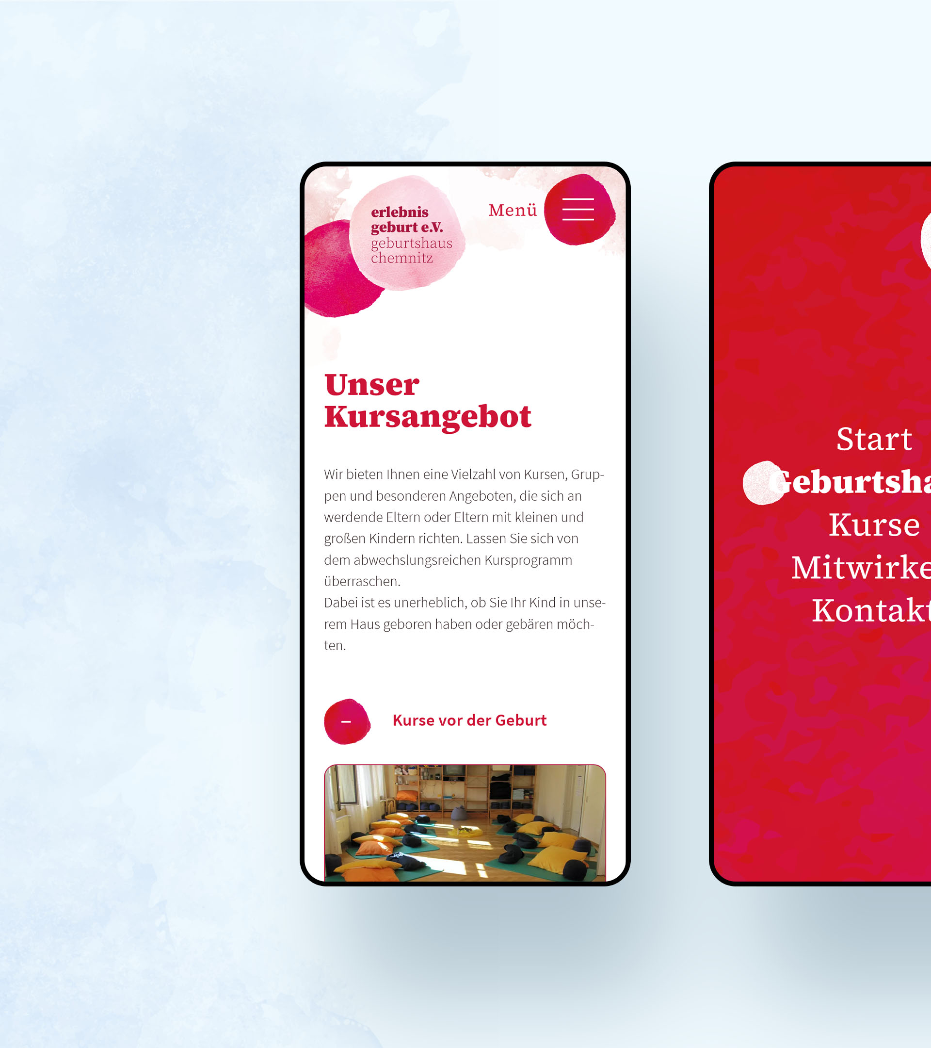 Damit sich die werdenden Eltern einen guten Eindruck von der Arbeit des Geburtshauses verschaffen können, entstand ein umfangreicher und freundlicher Webauftritt. Durch die Anbindung des externen Systems von hebammenbetreuung.de können verschiedenste Kurse direkt auf der Website gebucht werden.